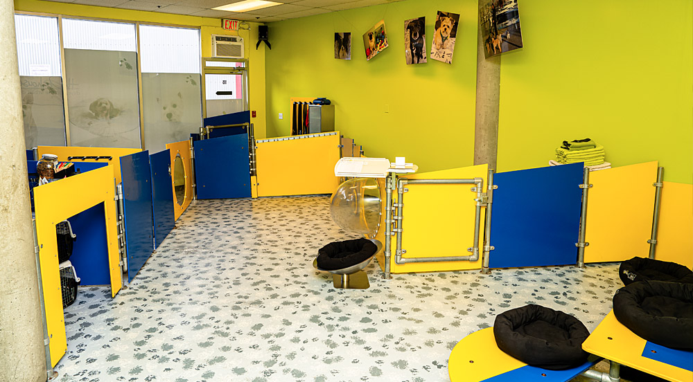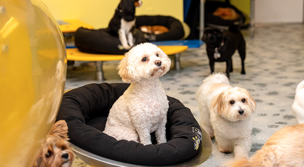 Rex Dog Hotel + Spa. Secure Overnight Boarding with 24/7 Care in a Small-Dog-Exclusive Section.